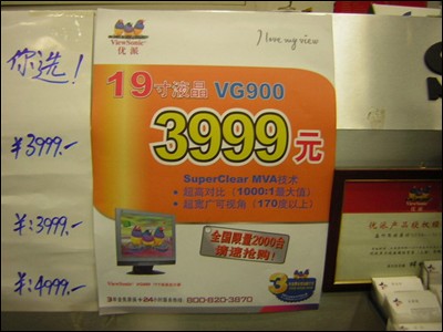 优派3999元VG900的推出,已成为了19英寸大屏时代到来的标志性事件!1000:1的对比度也是将液晶显示器的技术指标,再次提升到一个更高的水平上。对此款产品感兴趣的朋友不妨去看看。