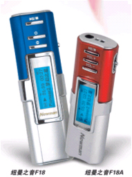 纽曼之音F18A的身材比F18缩小了近1/3,机身更加小巧;电池设计改进为内置锂电,机体重量明显减轻。内置标准可伸缩式采用USB2.0高速接口,传输速度更快。新增FM调频功能也是F18A的重要升级部分,可实现FM内录、存储20个FM频道。这款F18A采用最新进口Sigmetel35 系列解码芯片,音质和低功耗方面较F18更为出众,内置锂电可连续播放12小时以上。 在功能上,F18A支持MP3、WMA、WAV文件格式播放,具有标准、爵士、摇滚、经典、流行五种音效模式;内置MIC,可录音时间长达480分钟。内置FM调频功能,具有FM内录功能。另外,具有A-B复读功能,支持ID3信息显示,支持中英文歌曲显示,并支持在线固件升级。