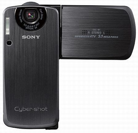 接下来为大家介绍的是这台酷似手机的索尼Cybershot DSC-M1,能拍照的手机我们就见得多了,可还没有见过可打电话的数码相机,虽然M1依然不具备打电话的功能,但相似的外型却能给人不少的遐想。索尼M1的外型同样突破了传统数码相机的造型,它采用竖直握持方式,机身后半部分可作90度旋转,并且上面的LCD屏幕再可作270度随意旋转,无论任何角度都能轻松方便的取景。