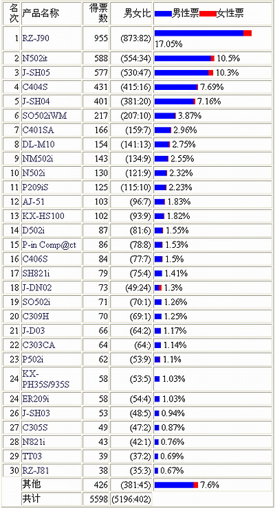 2000年的总投票数是5598票,其中三洋制DDI的口袋型终端RZ-J90以955票获得了2000年最佳手机产品的称号。