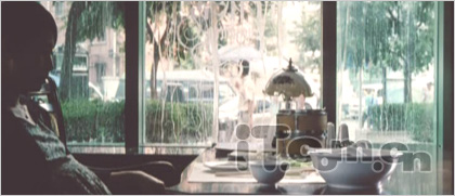 ??在片末,刘若英吃饭的餐馆,外面好像在“下雨”,可是如果我们将视线望远一点,马路是干的,在路上奔驰的汽车都没有开雨刮,奇怪吧,哈哈