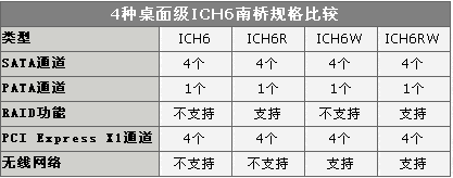 首先,我们需要来了解一下915套装产品的主要配件技术,其中包括i915芯片组和LGA775架构的处理器(Prescott核心)。Intel I915系列主板搭配了ICH6南桥(如下图),i915芯片组是INTEL用于取代i865的市场地位,其具有i915P、i915G、i915GL、i915GV几种规格,其中i915P支持533或者800MHz FSB,支持LGA775处理器,支持双通道DDR2内存、支持PCI Express x16接口、S-ATA接口和质美价廉的Azalia音频芯片等等;i915G除了具备i915P所有特性外,还集成了Intel Extreme Graphics 3显示芯片;i915GV与i915G几乎一样,唯一不同的是i915GV不支持PCI Express接口;而i915GL不支持DDR2,不提供显卡接口,并且只支持采用533MHz FSB的LGA775 CeleronD处理器。