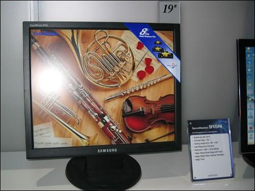 在CES上,三星带来了两款8ms响应时间的LCD,第一款是基于TN的915n,其对比度700:1,分辨率1280x1024,可以说是游戏玩家的首选之作。另外还有一款基于PVA的174P同样为8ms响应时间。