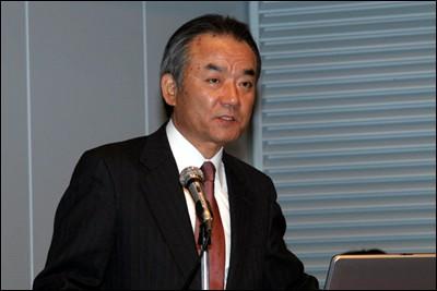 在新品发布会上发表讲话的NEC执行常务片山撤