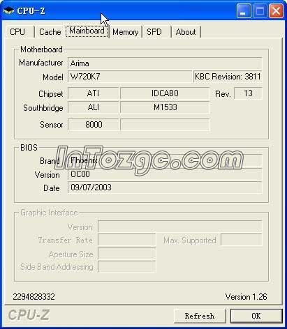 主板信息显示它采用了ATi北桥与ALI南桥芯片。