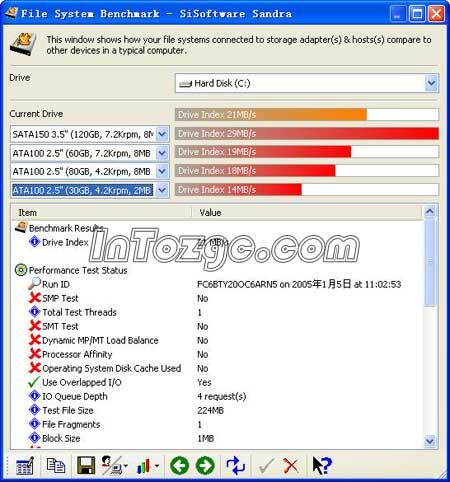 在SiSoft的内存测试中,这款笔记本的成绩可谓“惨不忍睹”,IGP A3就是ATi最早的AMD平台,台式机用芯片组为IGP320,用于笔记本的则是IGP320M。对比中,这款笔记本内存成绩甚至比标准的IGP A3还要低一些,况且标准系统中使用的还是PC2100内存。