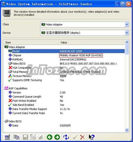 最后,在SiSoftware中,我们看到显示这款芯片组整合显卡为Mobility Radeon 9200AGP,这只能说明测试软件要信,但绝不能全信。