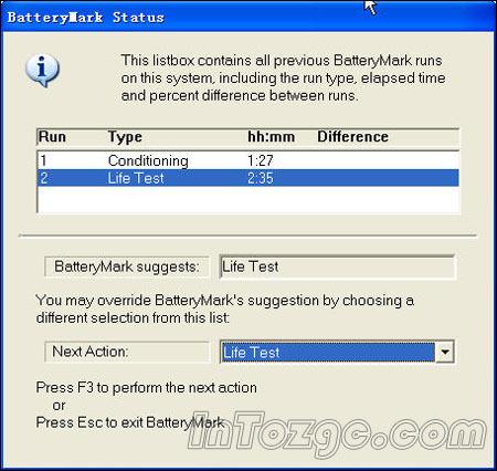 在正常情况下,采用迅驰处理器的笔记本电脑,在使用时间上基本都能达到2小时以上,从电池测试上看,Life Test的2小时35分是比较正常的,但是Conditioning的时间数据却有些偏短,不过这也只不过是一个数据而已,仅供参考。