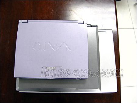 G10给人的第一感觉就是巨大,由于采用了17寸宽屏LCD,G10整机尺寸达到了406x285x37.5/43.5mm,比我们以往见过的任何一款笔记本都大。为了给大家更直观的感受,小编用12英寸索尼R505和15英寸的华硕A3G作为对比,拍下了下面一组图片。