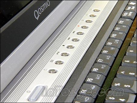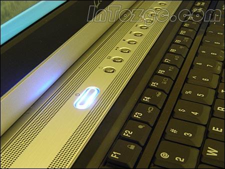 为了方便控制,G10拥有多达10个快捷功能键。它们位于键盘上方,用来实现电视和DVD的播放、快进等功能。G10的状态指示灯位于机身前端,右下角是遥控器的接收装置。