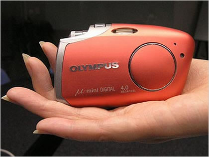 这款采用了类似跑车一样的拉风外形设计的数码相机是近期被媒体炒作的最火热的机型之一,它仅重115g,400万像素DC,独特的内潜式镜头盖改变了传统滑动式镜头盖造成相机凹凸不平的外观,实现了全天候防水;1.8英寸宽视角的显示屏。模式切换方面,µ-mini采用最新概念的直滚轮设计,使切换模式间只需一只手指;在拍摄方面,µ-mini拥有13种场景模式,十分适合MM们使用,值得一提的是µ-mini使用了奥林巴斯最新研制的TruePic TURBO图像处理器,相机的性能有了很大的改善。