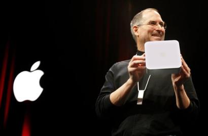 苹果CEO乔布斯正在展示只有平装书大小的迷你Mac