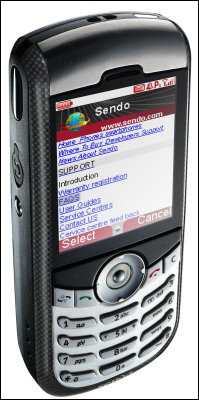 而在产品方面,Sendo也有其精品的推出。Sendo X的推出则是其重量级的机型。采用直板设计机身的三围是110× 49×23mm,重量则是124克。
