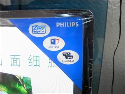 从飞利浦170X5右上角张贴的标签上我们可以得知,这款显示器除了具备我们上面提到的“数字显亮”以及DVI、VGA双路输入,还具备零亮点承诺,这无疑也是飞利浦170X5另一个闪耀之处。