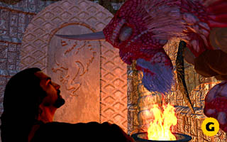 一个很有历史的美式经典RPG,在国内也被称作“黑暗王座”。这个曾经是“西木头”最成功的RPG系列虽然因由“一代不如一代”的症结而终于成了又一个昙花一现的系列,但作为最早一批在主视角RPG中引入3D技术的大地传说2来说,它也确实同mm6一起开创了主视角RPG的未来新方向。与mm6的高度自由化设计不同,这款游戏仍然遵循着很传统的固定剧情路线,这样本有利于制作小组在当时3D技术还不够成熟的情况下更加注重画面的表现……但是令人难评的是,最终制作者呈现于我们眼前的确是一种写实风格贴图与糟糕3D场景结合而成的感觉怪异的奇特画面。特别是那些室外场景中逼真的配色下形状异常的“花草树木”,令人置身其中一种“诡异”的感觉便登即油然而生。故事本身创意颇好,带有恶魔血统的受难王子挣扎于人性与魔性的边缘,背负拯救自我与世界的宿命??这足以攒成一出媲美“哈姆雷特”的史诗剧情,但我们的“西木怪才”们又是用别扭的任务设计和层出不绝的荒诞bug将它变成了一部结构松散的“后现代”诡异情景剧(好在还没弄出个情景喜剧来),真是一次“非常”的尝试啊!