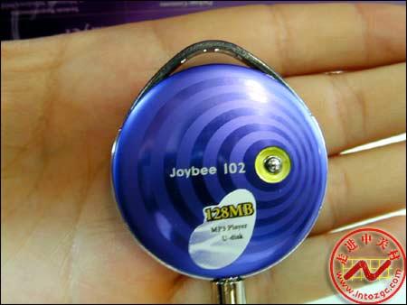 靓丽的外观是Joybee102的一大亮点。全金属外壳,光滑细腻色泽温和。彩色环状花纹配以略微突起的挂绳口,让俺想起在T型台上模特们佩带的一种大耳环,非常雅致!难道这就是设计者的灵感来源?