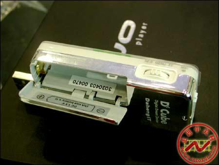 镜面的外壳配以白色透明塑料面板,显得大方得体。遗憾的是,当俺将播放器握到手中时发现它的后盖并非金属材质,虽然这种设计可以让“公主”拥有47g的体重(不含电池),但坚固程度肯定会大打折扣。机身正面有播放和录音按钮,其它功能键分列机身两侧。因为采用了推拉式USB接口和一节AA电池供电,所以机体较厚,另外,电池仓盖与机身连接太脆弱,需小心使用。