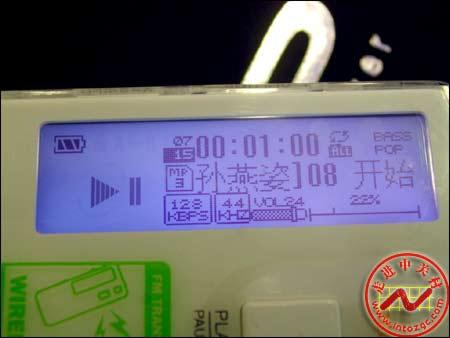 ZINO-z700i还带有FM Transmitter(FM发射器)。射频是一种刚刚在MP3上兴起的功能,说白了就是主机作为一个小电台,通过天线将正在播放中的音乐以调频信号发射出去,但有效距离不是很长(一般1.5m到2m)。这样的功能可玩性很强,可惜的是它发射的载波频段较窄(87.5-95MHz),比丹丁MH-328逊色一些,后者载波频段为88.1-107.9MHz。