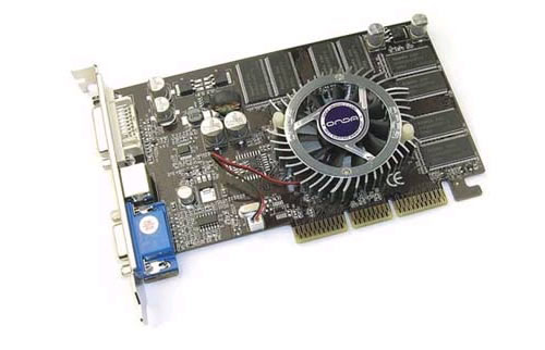 它采用的是三星3.3ns的TSOPIIX显存,单面8颗设计,构架出128bit 128MB 的显存配置。根据厂家的说明,它在使用超频软件的情况下可以轻松的超到500/600MHZ的核心/显存核心频率。接口方面采用了D-Sub+TV-OUT+DVI的全接口设计。
