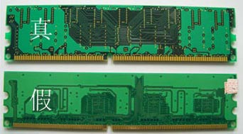 现在的所谓三星原厂的仿冒品如同以前的散装条,做工较为粗糙,PCB质量较为低劣,并且分量也不及原厂条那样重。内存颗粒上的激光字体也有很大的区别,原厂的非常清晰,而仿冒品则有摩擦过的痕迹。