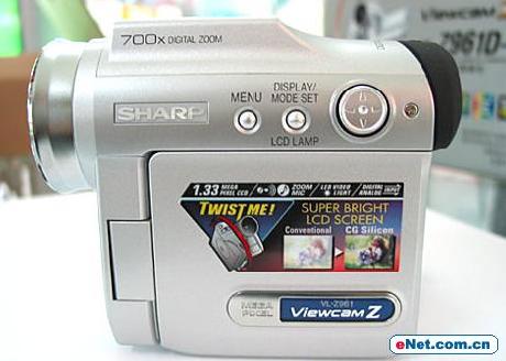 与同价位的 DV 相比,静像分辨率低了点。为了提高画质,该机引入精美画质机能,即保持影像的明亮部分,提亮暗部,使影像整体清晰易看。此外、根据肤色的最适合处理,补正脸部明暗部微妙的色差,使肤色看起来更自然美丽。或许出于对功能单薄的补救, Z961D 在配件上毫不吝啬,配备了 LED 视频灯和 VR-8MC 变焦麦克风,颇能吸引追求新鲜的买家。为夏普说句公道话吧, ViewcamZ 系列提出的外置变焦麦克风是其特色,只是被某知名品牌改头换面一番后粉墨登场,在市场上反而表现得喧宾夺主了。