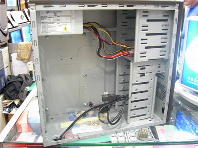 宽大的箱体内部,适合目前市面上所有的电脑主机板,无论大小。托架上很多小孔,加之侧面挡板上的一个导流风扇,散热问题可以很好的得到解决。