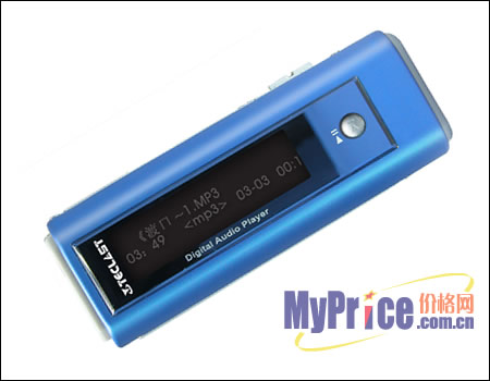 机身采用了全金属亚光铝合金材质,体积为73×26×18mm,重38g,配以珠光漆和亮银色的色泽搭配,非常炫目时尚。这款MP3有宝石蓝、玛瑙红两种颜色可选择,如果你和你的他(她)觉得两人使用一个MP3听音乐有些不方便,也可以每人选一个颜色来使用。