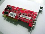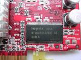 这款R9200SE并没有采用通常我们所见到的大PCB板,而是采用了窄PCB设计,因此也省掉了DVI接口。显存方面采用现代4ns颗粒,64bit标准位宽。总的来说,在速度方面R9200SE不如GF4 MX440-8X,但是支持DX8.1使它的卖点增加不少。