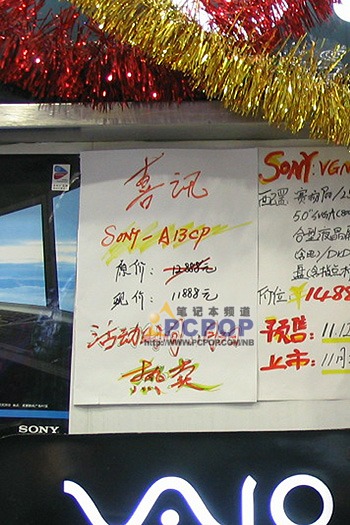 去年年底之际,索尼曾经推出过一次大规模的“圣诞促销大餐”活动,将旗下的B、TR、S、T、A、X505 六大系列,多达十款产品进行了全线降价。如今,索尼又再次推出“金鸡报春晓,索尼送好礼”活动,虽然这次活动属于大规模全线促销,不过赠品都只是一个包包和《功夫》鼠标垫。在经过一番挖掘之后,小编终于觅出亮点:VGN-A13CP降价,现已从之前的12888元降至现在的11888元。