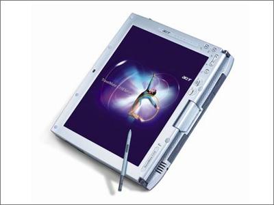 03年4月,宏基推出了全球首款迅驰双用平板电脑TravelMate C110,C111则是其随后推出的升级版本。配置上看,标准的迅驰平台笔记本,C111采用的芯片组是855GM,但无可厚非,这款机器是03年9月份推出的,纯属历史遗留问题。屏幕方面也不是一般的触摸屏,它的手写功能则是通过电磁触控笔和屏幕里面的数字转换器共同实现手写功能,也就是说,你可以不必触碰屏幕即可控制光标。