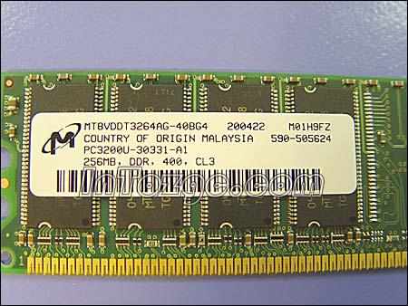 它采用美光颗粒,PC3200,CL=3,256MB,并没有特殊之处。