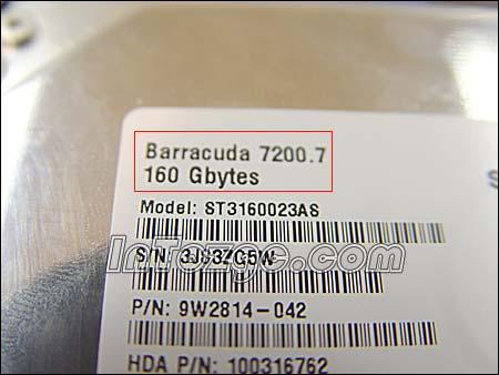 它的型号为希捷酷鱼7200.7,160G 7200转。