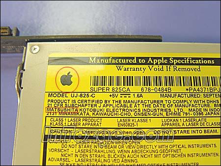 光驱背部铭牌依然有醒目的苹果标志,从标识上我们可以看出,这款光驱出自matsushita(松下的子公司)。
