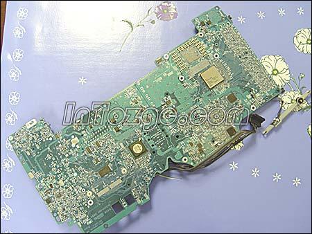 不过您先别急,这款主板背面也有不少芯片,右侧银白色的方块,就是主板芯片,上面标有IBM字样。