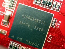 采用了非公版的板型设计,在用料上却一点也不含糊,卡上可以寻找到不少三洋SVP系的高级贴片式电容。显存芯片为采用mBGA封装的2.5nsDDR显存,默认频率650MHZ,还具有一定的超频空间,核心是FX5700LE,我想也不必多说这块核心的功能,大家都比较了解了,核心频率为400MHZ。