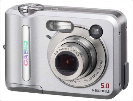 虽然没有Z系列的经典,但卡西欧R系列的历史也是非常悠久的,R51的体积还算小巧,银色的机身也带有一些时尚机的色彩,这款产品采用了1/2.5英寸CCD,有效像素为500万,镜头并没有采用宾得的SMC镜头,而是自家的3倍光学变焦镜头,焦距范围相当于35mm相机的39-117mm,光圈范围F2.8-4.9,最近微距则为10cm。