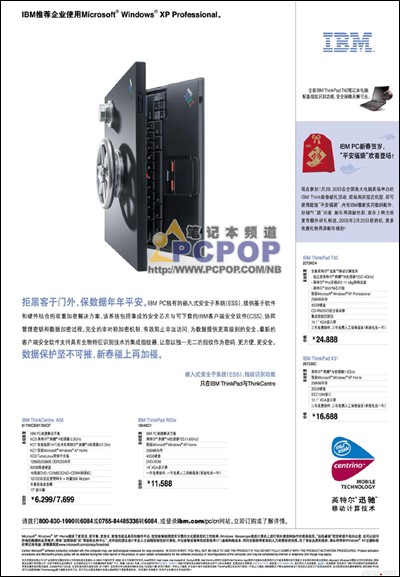 1月29、30日在全国25个城市各大电脑卖场举办IBM Think新春献礼活动,现场购买指定机型,加88元,即可获得价值千元的拜年大礼 “平安福袋” ,内含IBM原装光学三键滚轮鼠标、IBM原装256MB USB2.0存储钥匙和3M显示屏拭亮魔布。