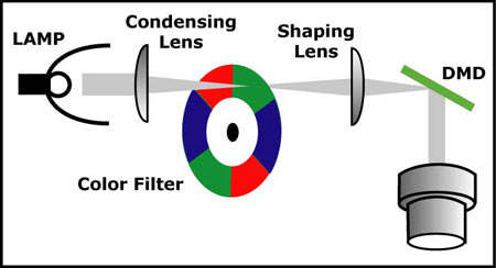 DLP的投影机在色彩方面的表现应该是三类投影机中很次的,因为色彩过渡(就是感觉画面播放的时候颜色是一块一块的)。不过现在有多色轮的投影机,色彩过渡改善很多。