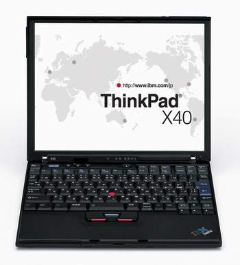 我们看到的这款X40采用低电压版的Intel迅弛处理器,主频为 Pentium(R) M 1.2GHz,同时配置12.1 英寸液晶屏,256MB DDR333内存,40GB硬盘,外置光驱,12.1寸的显示屏幕配以1,024 x 768的分辨率,裸机重量仅仅为1.48公斤,如果加上变压器的话,旅行重量也只有1.82公斤。另外,ThinkPad X40的标准电池使用时间为3.5小时,如果采用扩充的大容量锂电池,最大放电时间可以长达10小时。X40没有内置光驱。但可选UltraBase X4底座,这样底座放置在X40的下面,可外挂光驱也可以作为端口复制器。