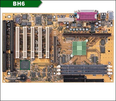 BX板是少不了,是否支持66MHz的CPU强行超到100MHz很重要。首推的当然要数升技的超频王BH6。不过,当时市场上少之又少,商家乘机炒到1350元,比华硕大哥还贵。它突出的地方就是有SOFTMENU调核心电压功能。