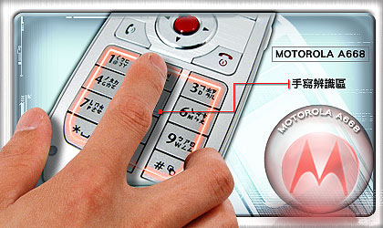 这款手机您应该不会陌生吧,最近电视上都是它的广告,一群城市男女忧伤的指指划划,绝对够时尚,同时也让我们认识了手写至尊---摩托罗拉 A668,它是业界迄今为止唯一一款带键盘“指书“输入功能的百万像素拍照手机。