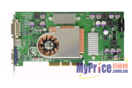 该显卡采用nVidia FX5700ultra显示芯片,做工优良,使用公版设计,PCB板较长,焊接了相当多的电阻,电容多采用三洋SVP铝壳电容,仅此两点就可以看出这款显卡的用料非常考究。显存采用了2ns DDR3芯片,默认核心/显存频率为475/950MHz,但其本身拥有相当高的超频性能。显卡核心上的散热风扇还是纯铜的散热器,显存上面也加上了做工精致的铝质散热片。这款显卡定位中端,不论从价位还是性能来看应该说是普通游戏爱好者的不错选择。