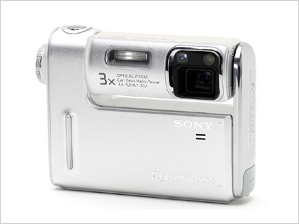 比起那些使用旋转LCD的相机,F717笨重而可以旋转的机身给人留下了深刻印象,F88旋转镜头更让人赞叹索尼的创新能力,同样是旋转镜头,却给人不同的感受,机身上独立出来的镜头部分可以旋转300度,而且集成了闪光灯,还担负着开机的重任,不熟悉他的朋友在开机时肯定会碰到不少麻烦,谁会想到看似脆弱的镜头竟然还是一个开关呢!F88的配置和同价位的索尼时尚机相仿,500万象素CCD,3倍光学变焦的蔡司镜头,具备了简单的手动功能,开机过程镜头并不需要伸出,所以启动速度比P100、W1快了许多。另类的旋转镜头最近拍摄距离可以达到1cm,这对于时尚机来说是难能可贵的,更是索尼相机的在微距拍摄上的一个突破,另类的相机给人的感受果然不同凡响。视频拍摄能力也毫不含糊,依然支持640×480分辨率25帧/秒的短片。如果你是一个个性张扬的人,F88则是你当仁不让的选择,不喜欢银色没问题,F88还有红色、蓝色两种机身可以选择。