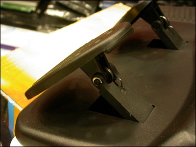 脚踏设计:在机械设计方面,这款方向盘脚踏部分设计得相当合理,双弹簧设计使得其很符合人脚下踏时候的角度。不过在仿真方面,其同样没有把刹车和油门的力度区分开。