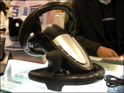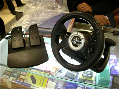 点评:该款方向盘外观可以说相当漂亮,不过由于只能用在PS2接口上因此局限性比较大。至于具体性能,由于从来不玩PS2,因此编者对其不敢轻下定论。目前该款方向盘报价为300元。