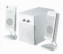 很难想象,以如此典雅的造型和柔和的色彩,再加上傲森日益累加的知名度,这款PA-312D的价格只有99元。音箱的低音炮采用了木质结构,线条简单,搭配灰白色的网罩有一种简约的协调美,卫星箱使用工程塑料材质,柔和纯美的乳白色和低银炮的色彩相得益彰,搭配和谐。这款小巧的2.1多媒体音箱的音量控制旋钮设置在音箱主体低音炮上,旋钮位于前面板,十分方便调整。比低音炮稍高的卫星箱有着简洁流畅的外观造型,对于一款廉价的桌面型多媒体音箱,这样的整体形象相当惹眼,而且非常节省桌面空间。不过,99元的价格还是有其特定的原因的,因为PA-312D的技术指标非常普通。低音炮的额定功率仅为4W,卫星箱也仅有1W*2,但其乐曲表现力还是不错的,纯净清晰,噪音也控制的很好。相信这款PA-312D非常适合摆放在大学女生那空间有限的电脑台上,如果在其低音炮上或周边点缀些小花小草等饰品,一定充满了情趣。