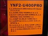 该款主板的型号为YNF2-U400Pro,它采用了NF2 Utral400+MCP RAID芯片组。最高支持400MHz FSB的AMD AthlonXP处理器,当然,它同样也支持最新的Sempron处理器。其还支持双通道内存规范,每秒钟最高可提供6.4GB/S的内存带宽。板载ALC655音效芯片和RTL8201BL网络芯片,提供了6声道音频输出以及10/100MB网络传输。再加上支持两个Serial ATA接口和AGP 8X,可以看出其功能还是比较强大的。