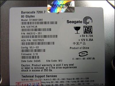 Seagate最早推出的Serial ATA硬盘只有80GB一款,后来,由于SATA在主板方面得到了广泛应用,因此,又推出了容量为120GB/160GB/200GB等多款产品、完全追随主流市场的容量需求而提供产品……从外观来看,硬盘正反面都用金属完整保护着,并分别贴上产品说明。