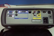ASK C180/C160的接口也有些名堂。其M1-D/A接口可以通过一条二合一线缆与电脑的显示输出接口和USB接口相连,不必再为获得遥控鼠标功能而另行连接USB端口;利用M1-D/A接口,还可安装LiteShow无线模块,获得无线投影功能;C180在C160的基础上还提供了第二个电脑信号输入接口(VESA显示)以及RJ-45接口,而通过连接RJ-45接口并安装ProjectorNet软件,便可在局域网上对投影机进行监控和管理。 对于亮度这么高的机型,散热设计自然不容怠慢。可以看出,两款机器的散热风道都采用了近乎“直排式”的设计,进风口和出风口分别位于机身的两侧,而且面积都较大,尤其是出风口几乎横贯了整个机身的左侧,应可获得极佳的主动散热效果。