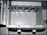 在机箱里,有两个5.25寸槽位,一个3.5寸槽位,4个硬盘位。机箱钢板都采用了EMI防磁折边工艺,钢板厚度高达1.0MM。并且光储、软驱、硬盘全部可采用滑轨安装。